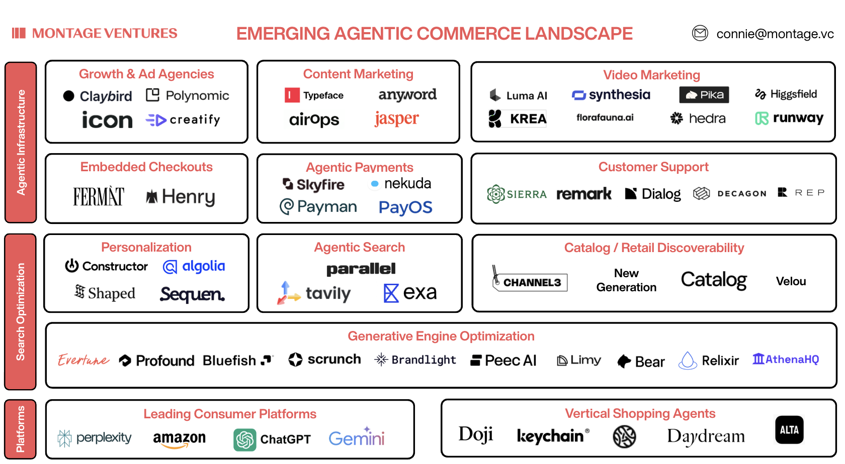 Looking forward, we expect to see infrastructure-level companies reimaging how AI interacts with consumers and powers shopping decisions, alongside new AI-powered vertical commerce platforms. Two example companies and investments we've made in the space include Fermat Commerce, which provides dynamic and personalized shopping experiences across the customer lifecycle. Airial Travel is another recent investment that unbundles the traditional marketplace model, providing personalized trip planning for consumers and travel agencies. We imagine a world in which shopping experiences are powered by AI generated recommendations with agents who seamlessly research, plan, negotiate, and orchestrate the entire purchasing process. We expect new platforms and modes of interaction to arise, such as leveraging natural voice or employees and personal assistants that meet customers where they are. Below are a few categories of interest: